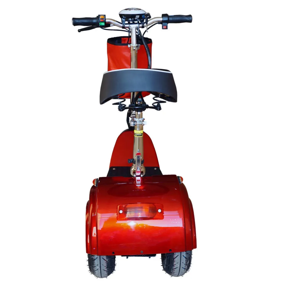 Модель оборудована оригинальным движком 350В типа мотор-колесо. Быстрый разгон до максимальных скоростных показателей 38 км/час обеспечивается свинцово-кислотной батареей (12 Ач). Телескопическая вилка на амортизаторах и сидение регулируются в зависимости от роста пользователя. Рама выполнена из особо прочной стали, легко выдерживает нагрузку до 110 кг. Шоссейные 12 дюймовые колеса имеют ярко выраженный протекторный рисунок для лучшего сцепления с дорожным полотном. Заряда батареи вполне хватит на поездку длиной в 40 км. Платформа для ног имеет высокие эргономические показатели и надежно фиксирует райдера при поездках. Стильная корзинка на руле предназначена для перевозки небольших грузов. Передний дисковый тормоз чувствительный и интуитивно простой в управлении.