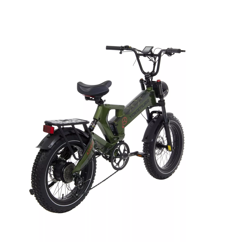 Электровелосипед Yokamura Apache Military Green - это сочетание силы, скорости и стиля. С мощным задним приводом и мотор-колесом 1000W, он способен развивать скорость до 50 км/ч, обеспечивая быстрое и уверенное передвижение.